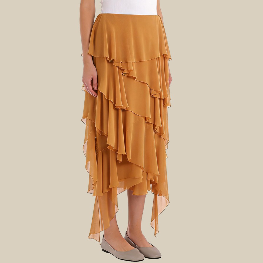 Fitted layered asymmetrical midi skirt