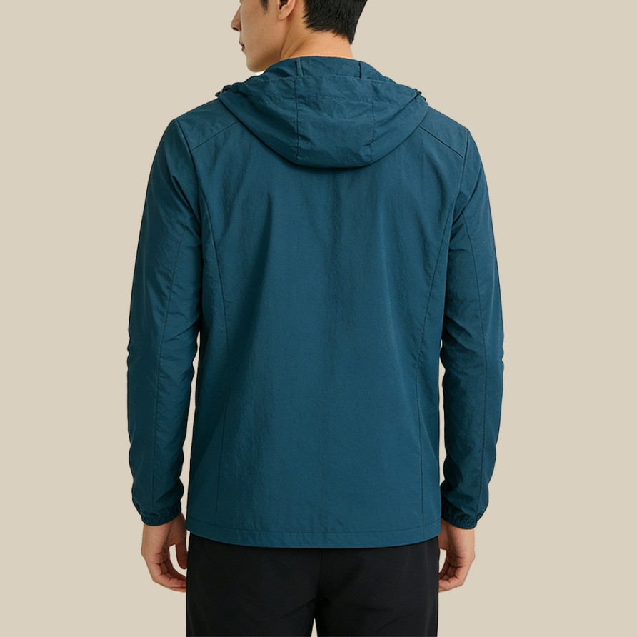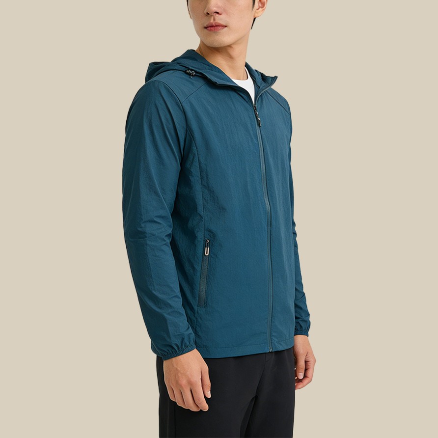 This men's sun-protection jacket is crafted from a lightweight, water-resistant fabric, making it ideal for the changeable weather of spring. The material is abrasion-resistant and durable, featuring excellent water-repellent properties that keep you dry during light rain.