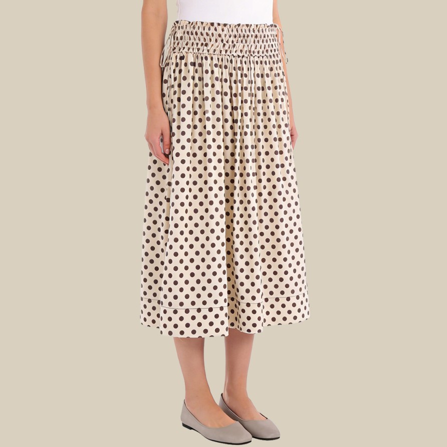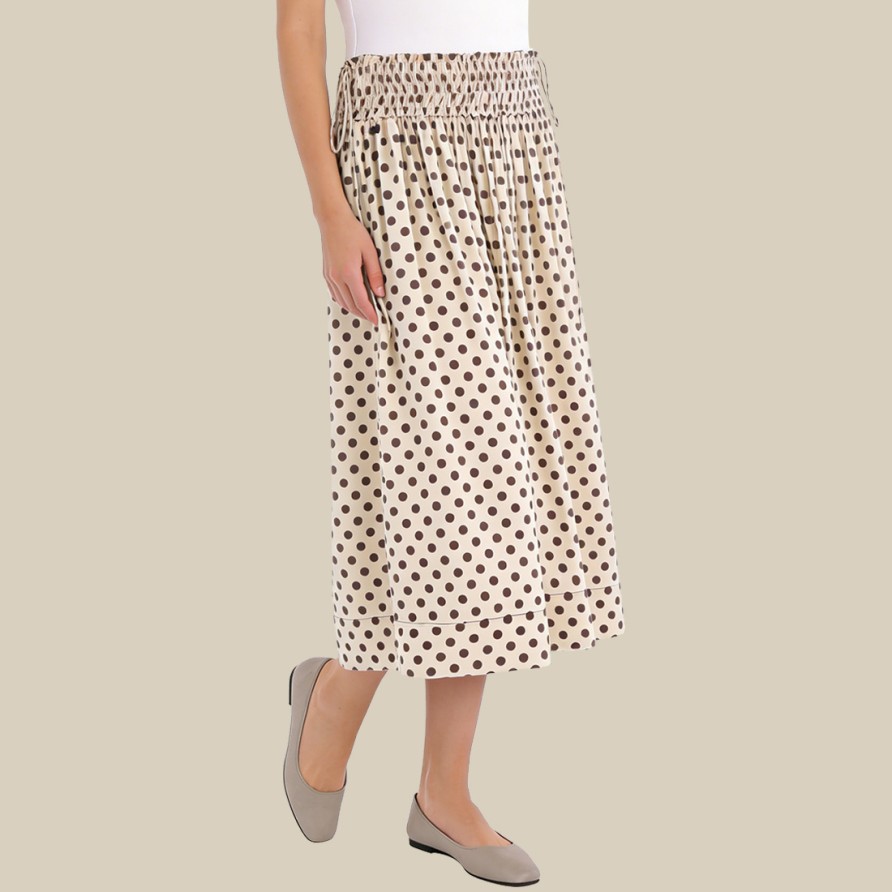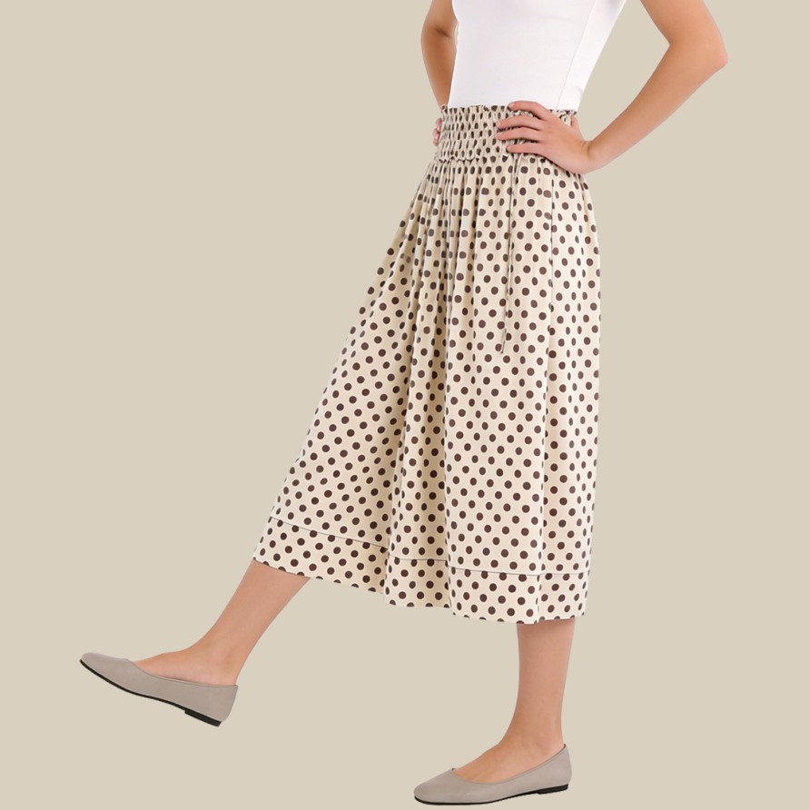 Polka dot elastic waist pleated midi skirt